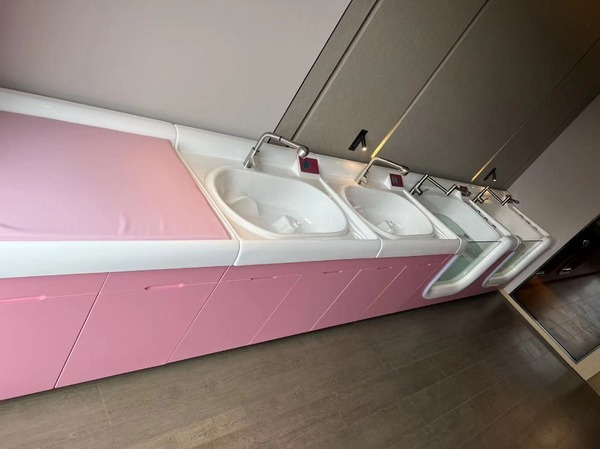 迪新婴儿洗浴中心拥有良好的台面质感,细腻亲切,无冰冷感,全弧形造型设计给婴儿体贴的呵护与关怀,洗礼池和游泳池特有的裙边设计,既方便固定一次性防交叉感染隔膜袋,又防止台面上污水流入池内。游泳池利用有效的水平面积提供更加理想的池内净深度,满足婴幼儿洗浴时的安全高度需要,同时有效保持水温特别设置水位线,防止婴儿游泳时池水外溢。