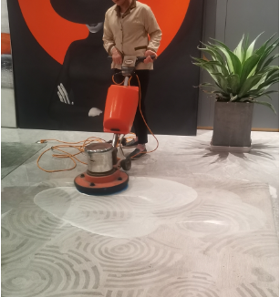 2、其次用专业的地毯清洗机配合专业药剂对地毯进行首轮、全面的刷洗,利用机器快速的转动和地毯清洗剂产生的大量泡沫使附着在地毯表面的污渍迅速的脱离地毯表面的纤维组织并与地毯清洗剂中的表面活性剂相结合,大量的泡沫与地毯中的污渍结晶,直到产生的泡沫细腻、洁白为止。