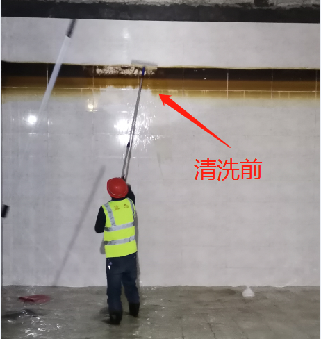 4.水箱清洗人员携带专用工具和水笼头进水箱(池)进行清扫和冲刷,先箱(池)顶,后底,由里向外依次进行,如有损坏处应及时修补。