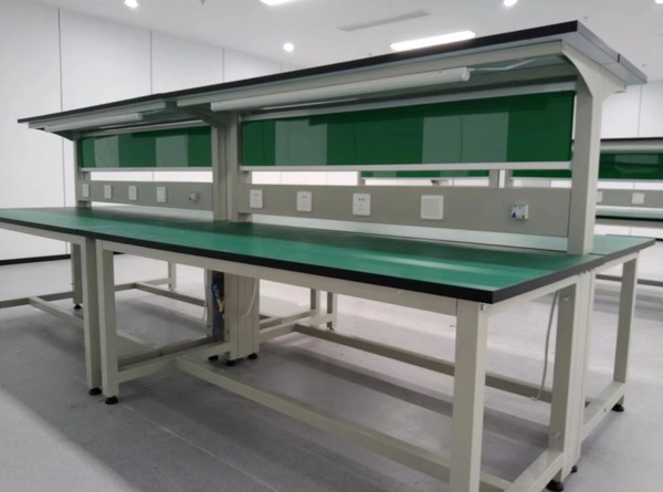 2、防静电工作台制作面一般由防静电三聚氰胺高压装饰层压板(俗称防静电胶皮)为表面材料与木质材料结合而成。