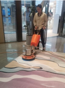 5、用装有打泡器、地毯刷的单盘扫地机,以干泡刷洗地毯