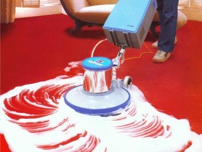 5、干泡刷洗:用装有水器、地毯刷的单盘扫地机,以干泡刷洗地毯。等清洁剂对地毯产生作用一会后,在重复刷洗工作。