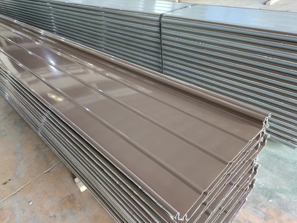 铝镁锰金属屋面突出的特点是整体性好,屋面板的长度方便搭接,提高了屋面的防水性能,本工程最长屋面板长度达到60m。因此铝镁锰板的整体性好,防水效果好。
