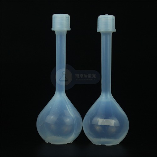 常和PFA移液管或移液枪配合使用。特氟龙容量瓶有多种规格,小一点的10ml~100ml,大的250ml~1000ml,实验室常用的规格是50ml、100ml、250ml。具体根据实验所需标液量选择对应的容量瓶规格。