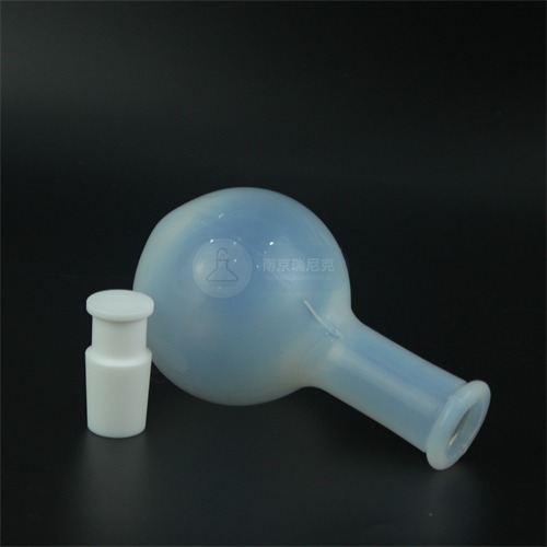 3、具有圆肚细颈的外观;窄口是用来防止溶液溅出或是减少溶液的蒸发,并可配合四氟塞的使用,来连接其它的聚四氟乙烯器材。