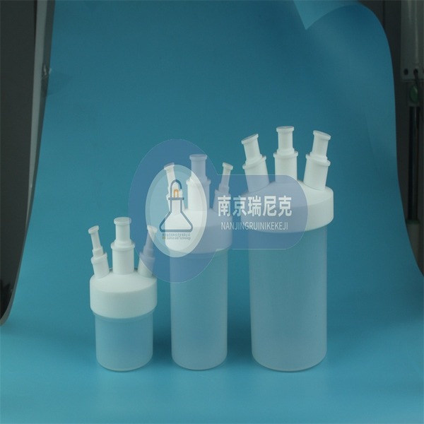 PFA平底烧瓶又叫反应瓶,常用于有HF或者冷凝回流反应等实验中,可作为接收瓶使用,可放入水浴器或油浴器里进行加热,平底稳定性好。相对于圆底烧瓶可直接放置,不需要铁架台等固定。