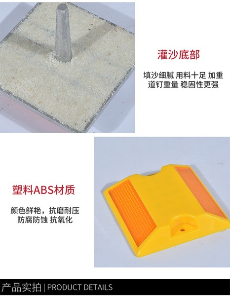 3. 道钉底面特殊纹路设计,用胶水粘接,与地面牢固连接,稳定性强经久耐用;