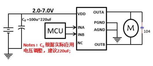 SA8301A具有一个PWM(INA/INB)输入接口,支持与行业标准器件兼容。