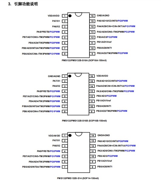 PMS132/PMS132B-1J16A: QFN3*3-16P(0.5pitch)