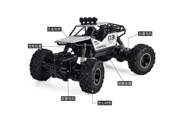 无线遥控攀爬车设计用于在不同的地形中进行远程操控和娱乐,它通常具备良好的越野性能和攀爬能力。这些车辆一般配备有强大的马达和能够适应各种地面的轮胎,使其能够在沙地、石砾、草坪等多种地面上行驶。