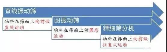 圆振动筛上的物料做圆形运动,直线筛上的物料向前做直线运动。