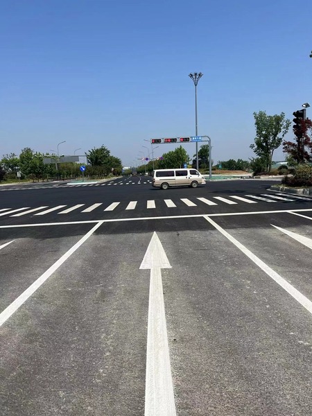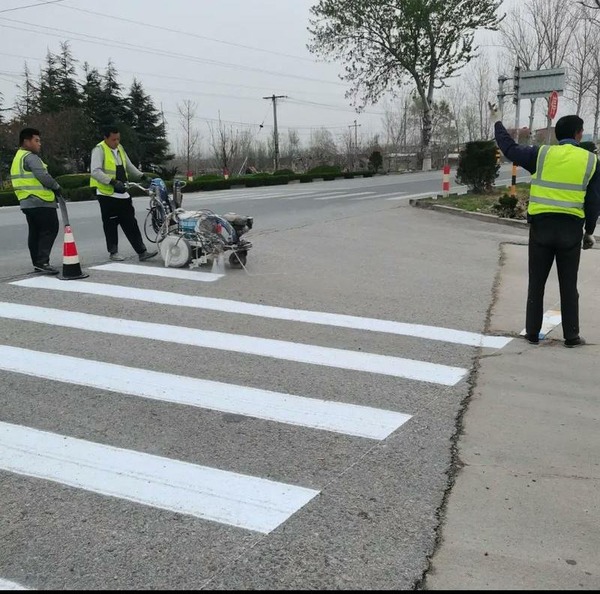南京达尊冷喷型道路标线划线在冷喷型道路标线施工过程中,需要使用冷喷涂料和冷喷划线机等设备。首先,将冷喷涂料按照一定比例混合搅拌,然后倒入划线机中。在划线机的作用下,涂料通过喷嘴喷涂在路面上,形成所需的道路标线。