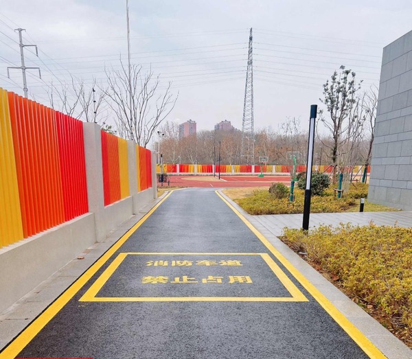 南京道路划线-南京njdz-202502消防通道路面划线一般采用黄色涂料,线条宽度应不小于10厘米,以确保视觉效果醒目。若消防通道宽度超过4米,可在通道中间增设一道划线,以更好地规范车辆通行。