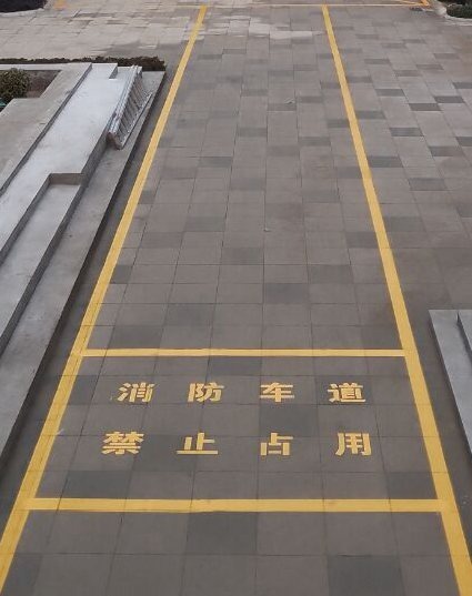 另外南京道路划线-南京达尊消防通道路面划线在消防通道入口处应设置明显的标识牌,标明“消防通道”字样,并注明禁止非消防车辆停放。消防通道的宽度应根据实际情况设定,但低宽度不应小于4米,以确保消防车辆顺利通行。消防通道两侧可设置反光标识,提高夜间辨识度。