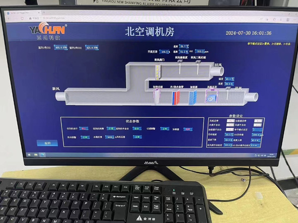 检测机组实际电功率,送/回风温混度、室外温湿度、CO2浓度,自动调节冷/热水阀、新/回风阀开度,使机组在不同季节、不同工况下,对系统的新/回风比新/回风总果、冷/热水流量、风机效率实施有效控制。
