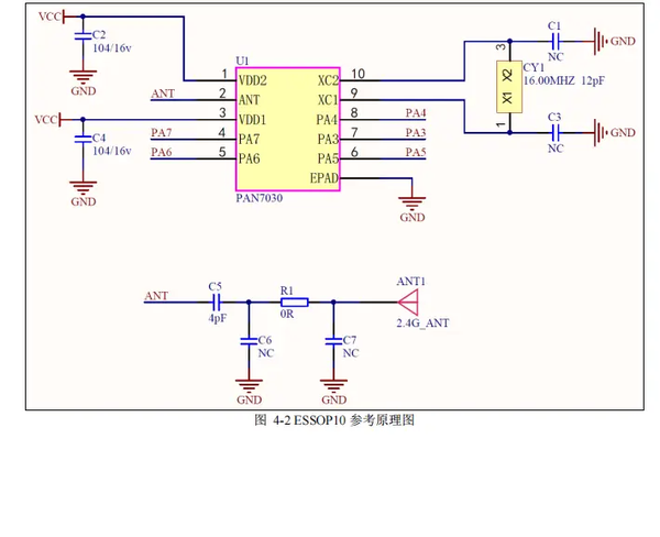 PAN7030 的射频收发器工作在 2.400~2.483GHz 世界通用 ISM 频段,集成**机、接收机、