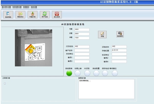 1、使用叉车放到平面秤上,通过摄像头开始操作,通过AI算法获取物资名称、客户单位以及物资存储位置。