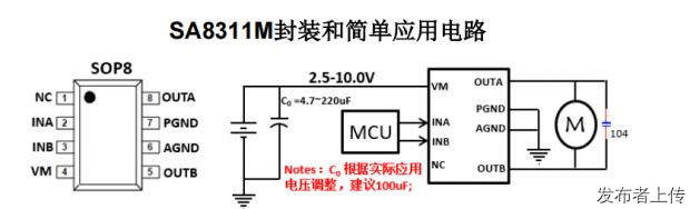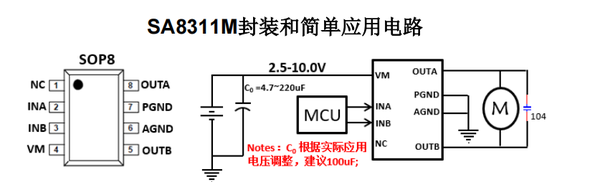 1. 以上推荐电路及参数仅适用于普通遥控车玩具,其他玩具及电机驱动在使用SA8311M时请根据实