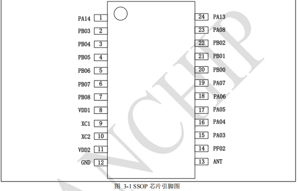 1 概述 PAN742x 是一款集成 32 位 MCU 和 2.4GHz 无线收发 SOC 芯片,适合应用于小四轴、遥控 器、智能马桶等领域。 PAN742x 内置低功耗的 MCU,内核采用 Cortex® - M0+内核,配合成熟的 KeilμVision 调 试开发软件,支持 C 语言及汇编语言。包括 64K 字节的 Flash 程序存储器、8K 字节 SRAM、 通用同步/异步收发器 USART、16 位的高级定时器和通用定时器、低功耗定时器 LPTIM、 实时时钟 RTC、最高 8 通道的 12 位模数转换器 ADC、电压比较器、SPI、I2C 和看门狗定 时器。具有高可靠性和低功耗的特点。 PAN742x 的射频收发器工作在 2.400~2.483GHz 世界通用 ISM 频段,集成发射机、接收机、 频率发生器、GFSK 调制解调器等功能模块,同时支持普通模式和 ACK 模式,能够灵活的 应用。通信速率支持 2Mbps/1Mbps/250Kbps。 1.1主要特性 性能指标: ⚫ MCU - 32位ARM® Cortex® - M0+内核,最高运行到48MHz - 64K Byte Flash,具有擦写保护功能 - 8K Byte SRAM ⚫ 时钟源 - 4种系统时钟 - PLL - 5个16位定时器 - 1个低功耗定时器 ⚫ 外设 - IO端口(高达24个IO口) - PWM - USART - 中断/复位 - 12位ADC(QFN32为8通道,SSOP24为7通道) - WDT - RTC - I2C - SPI - 电压比较器 - 上电/掉电复位