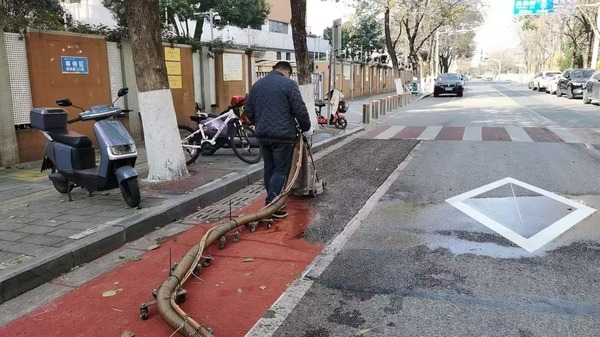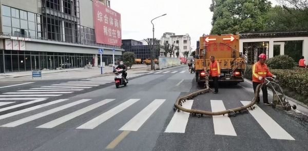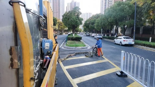 5、清除道路标线的方法-南京道路划线高压水射流清洗方法: