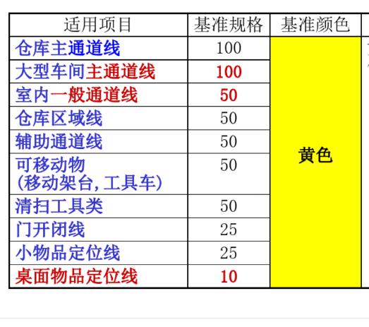 线宽60mm:原则上用于物品定位线;