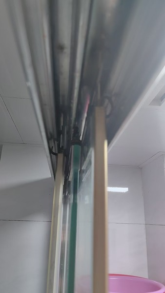 四、淋浴房活动门关上后,上边或下边有裂缝: