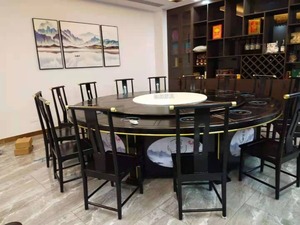 中式实木电动餐桌 餐椅 电动火锅餐桌 电动转盘餐桌 电动椭圆桌