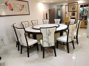 樵森家具批发销售电动实木雕花餐桌 电动大圆桌 豪华餐桌椅