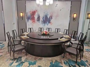 新中式酒店电动餐台 岩板轻奢自动餐桌 酒店转盘餐台 配套实木餐椅