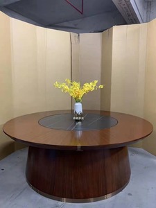 火锅电动餐桌 新中式电动餐桌椅 酒店电动转盘圆桌 实木电动餐桌