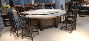 电磁炉电动餐桌 新中式实木餐桌 酒店自动大圆桌 电动椭圆桌 直销
