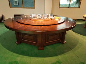 来图定制 电动餐桌 实木雕花电动桌 自动转盘大圆桌 火锅桌椅 酒店餐桌