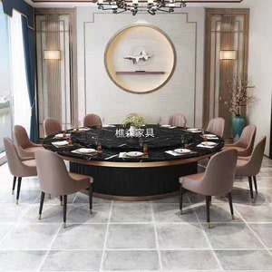 大理石电动餐桌 红木饭店餐桌椅 电动火锅桌 饭店大圆桌 自动转盘餐桌