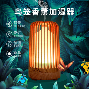 东莞润庆木纹加湿器创意鸟笼超声波静音香薰机厂家直供可OEM
