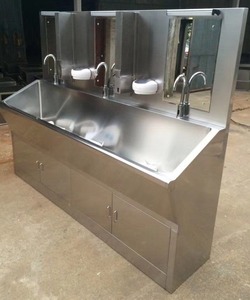 单人双人位多人位洗手池不锈钢刷手池 感应脚踏式膝碰式出水手清洁