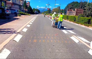 采用的热熔反光涂料是目前应用比较广泛的路用涂料之一,它是一种固体型涂料,在高温熔融状态下使用专用的设备涂布在路面上。产品具有施工简易、粘接力强、耐磨性好、抗污性强、色泽亮丽、耐老化性优异等优点,并且具有良好的抗压及抗冲击强度,耐开裂性优异,适合于各类路面使用。